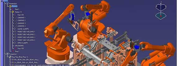 O DELMIA V5 ROBOTICS é uma poderosa solução integradora que permite ao usuário, projetar, simular, otimizar e programar células robotizadas em um ambiente 3D de simulação fabril.
