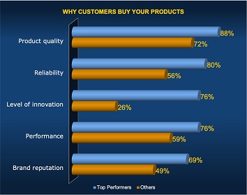 As empresas mais bem-sucedidas, chamadas de “Top Performers”, são mais propensas a citar várias razões pelas quais os clientes compram seus produtos. Isso significa que os engenheiros precisam se concentrar simultaneamente em vários critérios para serem bem-sucedidos e ainda ter tempo e flexibilidade para inovar.