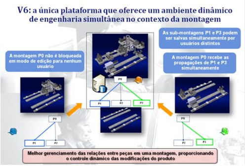 • Suporte aos cenários de projeto colaborativo envolvendo V4/V5 e V6, o que permite uma implementação gradual do V6 para um ambiente envolvendo uma OEM e sua cadeia de fornecedores.